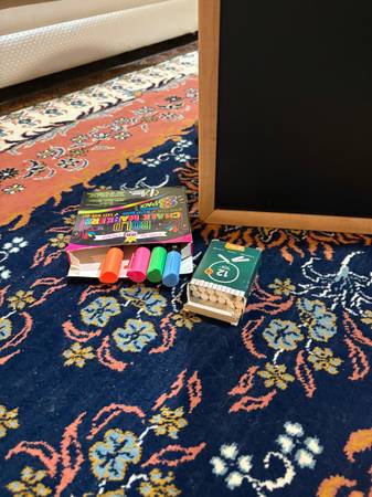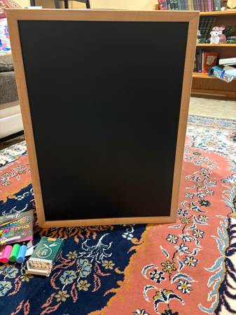 Wooden Chalkboard with chalk markers (non toxic, water based, easy wipe-out ) and 12 white dustless chalk ( smooth clean, dust free , last longer) Great for all ages. Wall mounted design. Easy to...