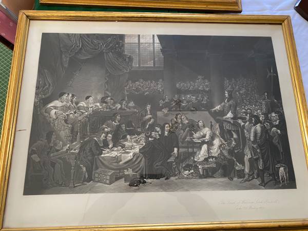 Etching 1 – Trial of Earl Strafford in Westminster Hall 1641, engraver WH Simmons, painted by William Fisk, London May 1846