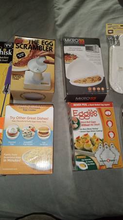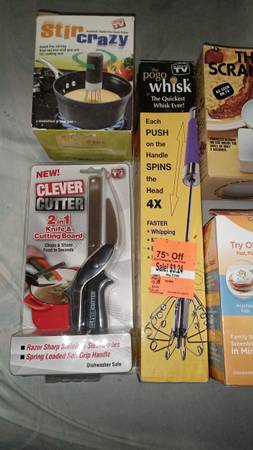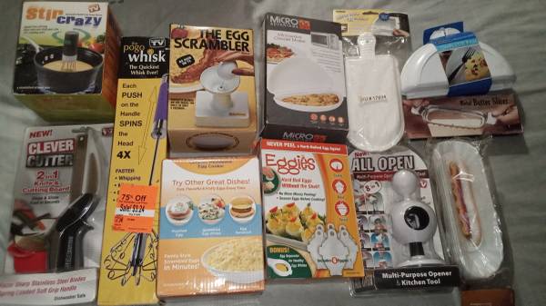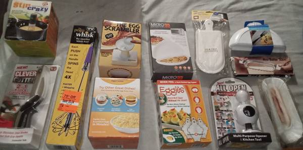 Some used, some brand new. AS SEEN ON TV items 20.00 OBO pick up only Cash/PayPal only see "more ads by this user"