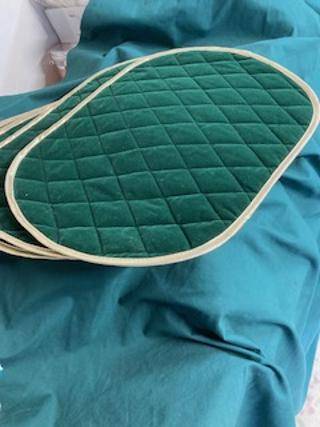 10 Green velvet with gold trim placemats with gold trim napkins very festive. $20 - Cash Only