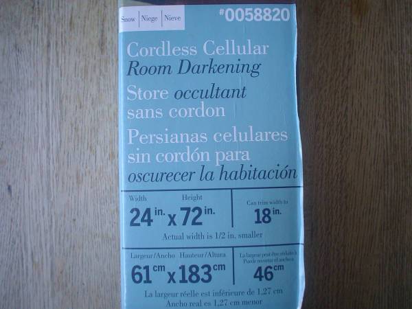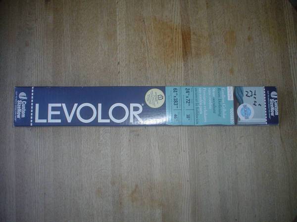 BRAND NEW LEVOLOR CORDLESS CELLULAR SHADE COLOR = SNOW ROOM DARKENING WIDTH = 22 3/4" (can be cut down to 18") LENGTH = 72" (which I believe could be trimmed) GREAT FOR A BATHROOM $30