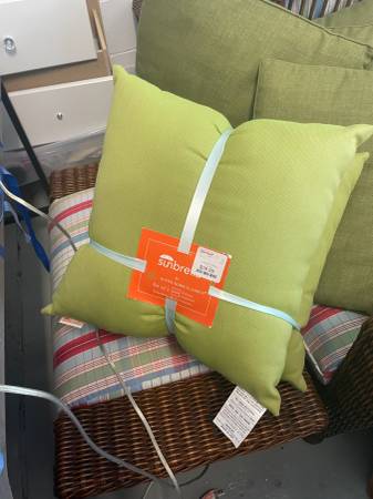 6 Green Outdoor Pillows (2 New) Smoke free household