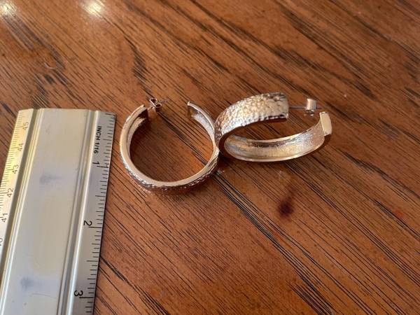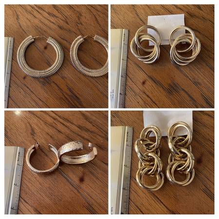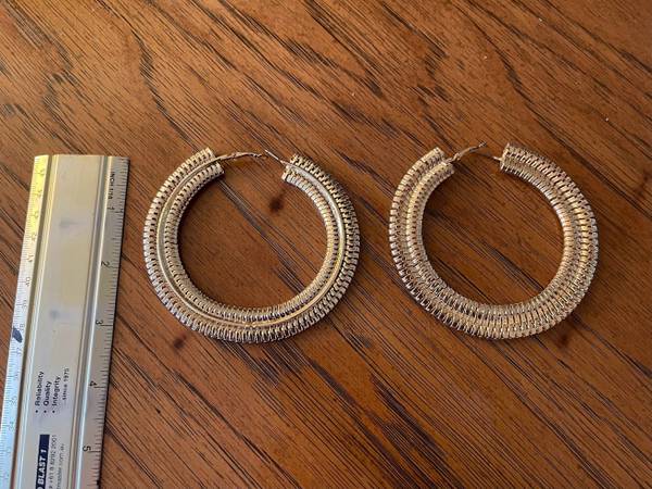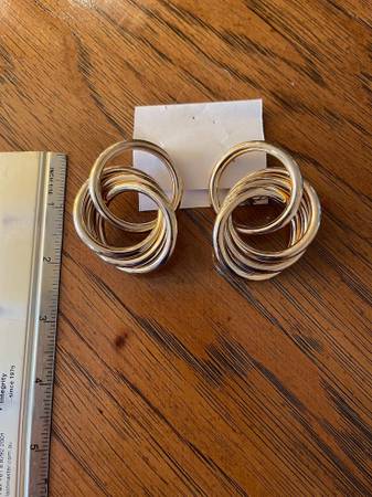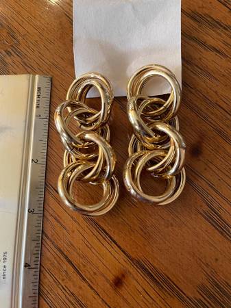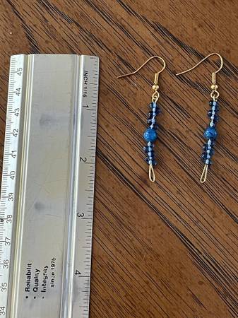 Like New Blue and Gold Colored Beaded Dangle Earrings for Pierced Ears Dimensions: See pics next to ruler Price: $5.00 Stylish Gold toned Earrings for Pierced Ears - $5.00 Per Pair Condition: All...
