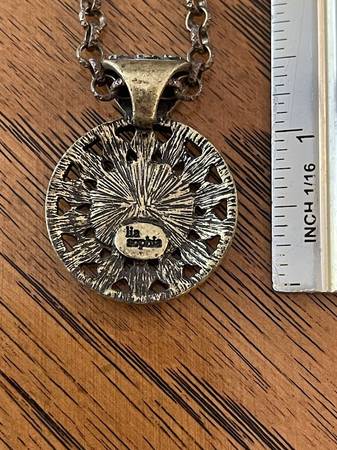 Lia Sophia Dark Bronze Colored Necklace with Pendant with Multicolored Stone in Center
