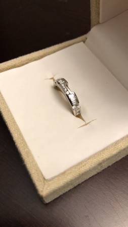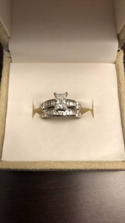 Engagement Ring Emerald Cut 1.12cts G VVS2 14k white gold; Estimated of all accent diamonds 0.75ctw. Weight 4.3g Ring size 4 Wedding Band custom made; 10 straight baguette cut diamonds estimated...