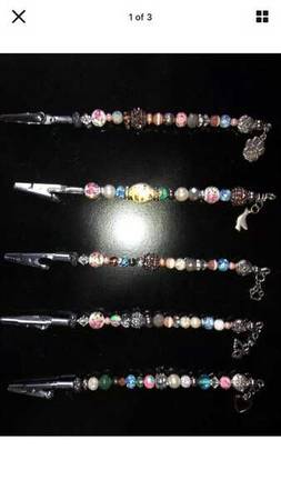 Beaded Bracelet DIY tool securely holds one end of bracelet, wristwatch or necklace so you can fasten even the tiniest clasp with ease. Fasten your own bracelets or wristwatch easily without assistance from anyone! Ideal for back zippers, french cuffs, repair work, and hobbies. The steel clip with pretty bling bead handle is approx 7”. Makes a great gift for anyone who lives alone, like having an extra helping hand! Pls see pictures as they are part of the description. The last picture is a stock photo. When purchasing, pls specify which one you want. The 1st one with the dog paw and the 4th one with the butterfly has been Sold. Thanks for looking.