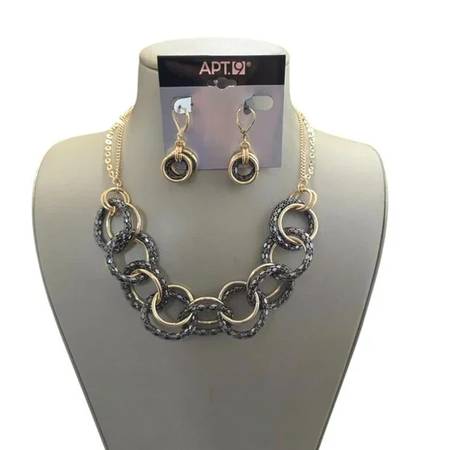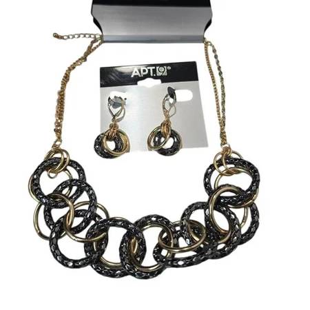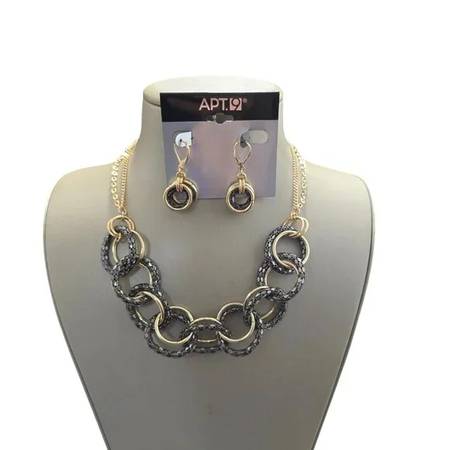 Apt 9 Women's Gold Plated Gunmetal Necklace & Earring Set NWT