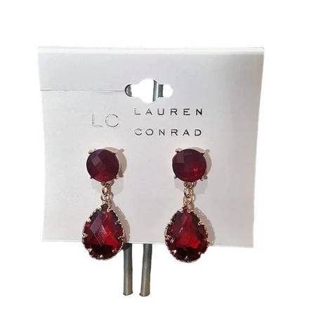 Share LC LAUREN CONRAD Women's Gold Plated Red Acrylic Teardrop Earrings NWT