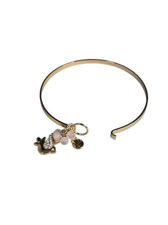 The Vera Bradley Women's Dove Free Spirit Gold Plated Charm Bangle Bracelet is a stunning piece of jewelry perfect for various occasions such as Mother's Day, Christmas, anniversary, or birthday. This bangle bracelet features a white/colorless crystal as the main stone set in yellow gold-plated metal, creating a beautiful contrast. The charm style with a bangle design adds a touch of elegance to any outfit, making it a versatile and stylish accessory. Signed by Vera Bradley, this bracelet is a perfect gift for that special someone who appreciates beauty and charm.