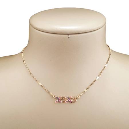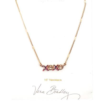 The Vera Bradley Women's Hug & Kisses Gold Plated Katalina Pink Necklace is a stylish and heartfelt accessory perfect for various occasions like Mother's Day, Christmas, anniversaries, birthdays, and Valentine's Day. Signed by Vera Bradley, this yellow gold plated necklace features a lobster closure and a 16-inch chain style design. The pink color and theme of hugs and kisses add a unique touch to the piece, making it a lovely gift for someone special. Made in China, this necklace is a beautiful representation of love and affection.