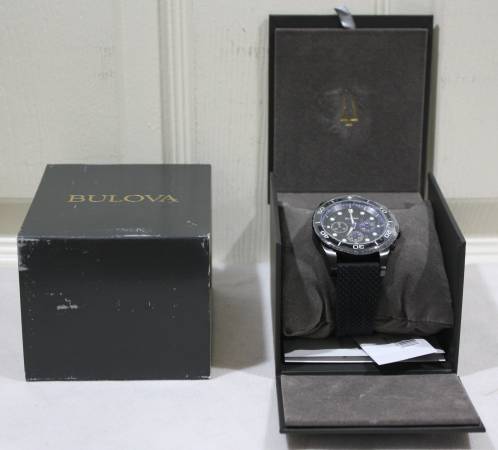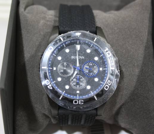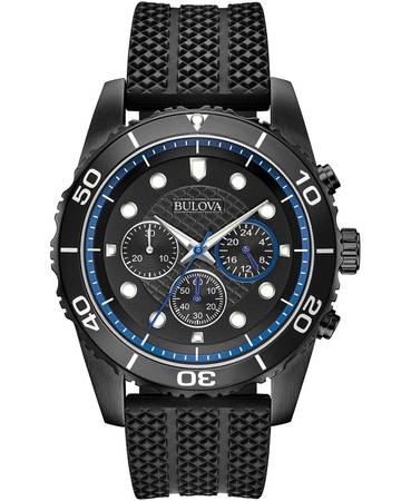 New Bulova Men's 98A211 Chronograph Sport Black Silicone Strap Watch...