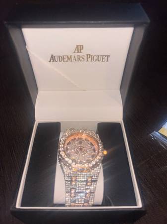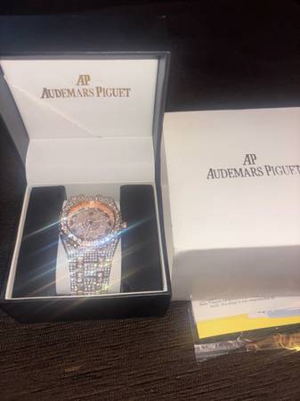 The price is negotiable!! The two tone AP watch pass the diamond tester. Come get iced out for the low! The watch features a one size fits all design and can be resized at any jewelry store for a perfect fit. It is the perfect holiday gift u can give to someone.