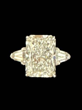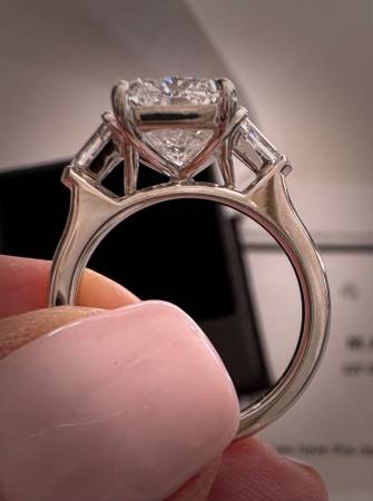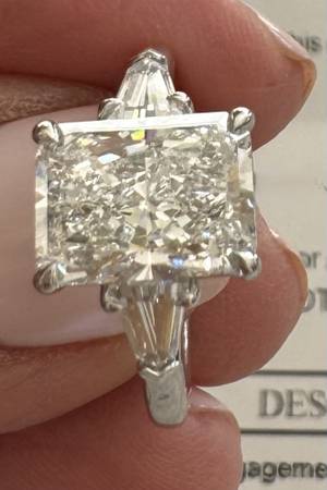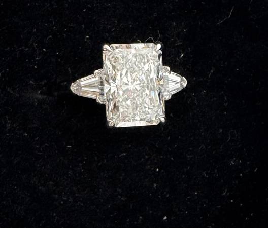 Impress her with this Beautiful Size 5 Diamond Ring set in Platinum! > Makes a great Engagement Ring or Holiday Present! > > 3 Stone Design - 2 Sides Stones are 5 Pointed Tapered Baguette...