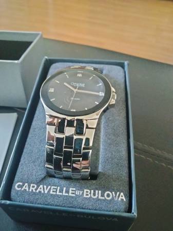 New with Tags! Double Boxed Mens Bulova Caravelle Genuine 4 Diamond Dial Modern Minimalist Black Face Luxury Stainless Steel Deployment Bracelet Watch. See Photos! If the ad is up the watch is still available, so no need to ask. Reply with phone # and I will call you to coordinate. Cash Only. Pick up only in Guttenberg, NJ. Thanks for your time and interest!
