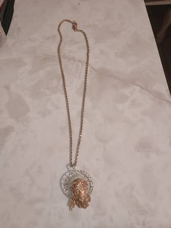 Gold chain 14kt around 16 grams and gold pendant Jesus face another 16 grams of 14kt gold