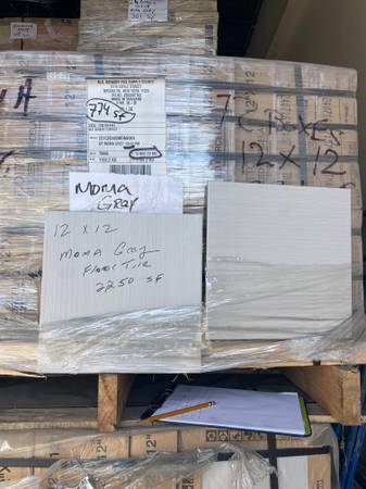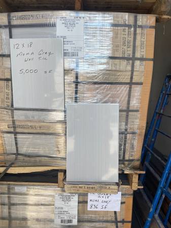 12 X 18 Moma Grey Wall Tile - 5,000sf @ $.45sf 12 X 12 Moma Grey Floor Tile - 2,247sf @ $.45sf 12 X 18 Moma Alabaster Wall Tile - 3,200sf @ $.45sf 12 X 12 Moma Alabaster Floor Tile - 2,800sf @$.45sf...