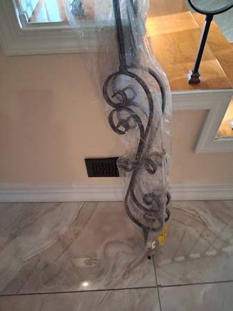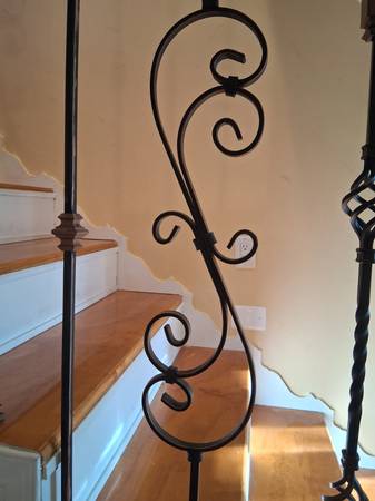 Brand new decorative wrought iron balusters for stair railings. Elegant scroll / “S” style design Black finish, works with wood or metal handrails 30 pieces available Standard 1/2" square profile,...