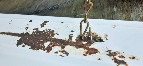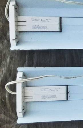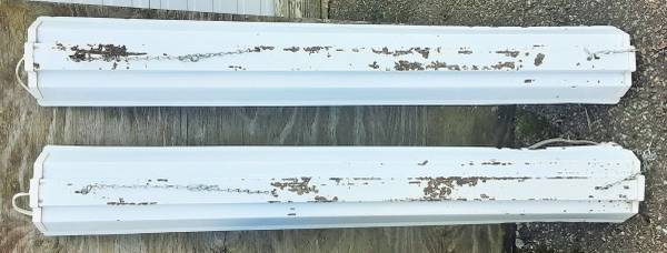 Used / working condition! ... bulb area (underside) of both fixtures are clean ... white paint on top of both housing units is flaking & has some rust (not visible when hanging - can be spray painted).