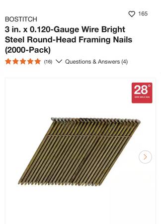 1 carton of 3” nails clip head Bostitch S10D-FH 1,925 nails ( missing — 1 clip ) $35 Cash and Carry Only