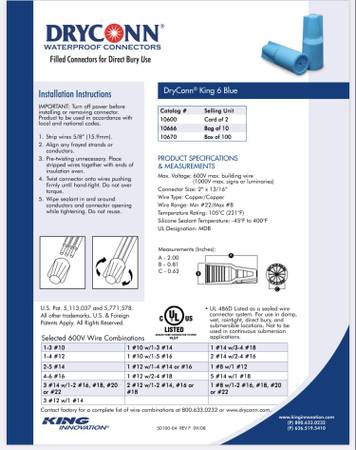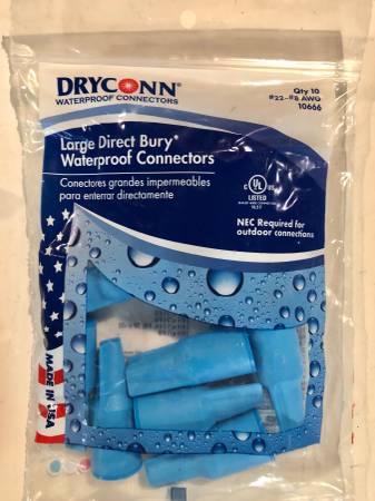 Waterproof Electrical Connectors Dryconn - Part #1066 Large Direct Bury Waterproof Connectors Paid over $100 for the 5 bags of connectors Have 5 bags ( 10 connectors per bag ) Sell at $8 per bag Or...