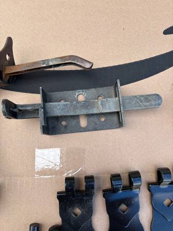 Gate Hardware used for wooden gate New set of hinges with removable pins Used Latch set Used Spring Torsion Closer Used items are clean - easy spray repaint These items are over 20 years old Not...
