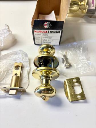 Kwikset #300S Privacy Bedroom Lockset Finish: US3 - Polished Brass New - never installed From the early 1990’s NOTE - No Plastic in the hardware as is in the product today $20 Cash and Carry Only