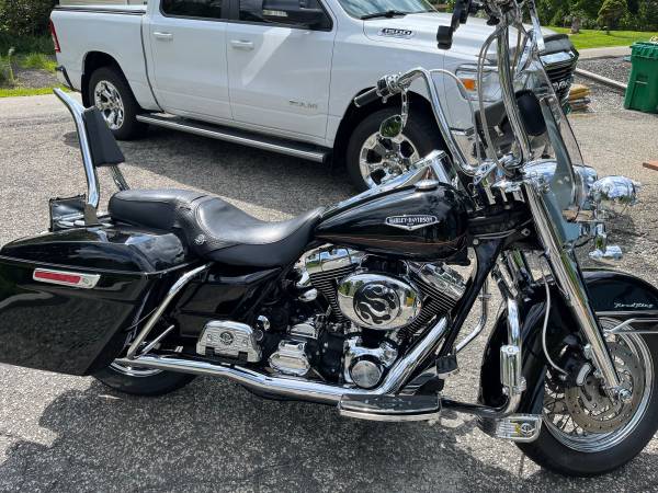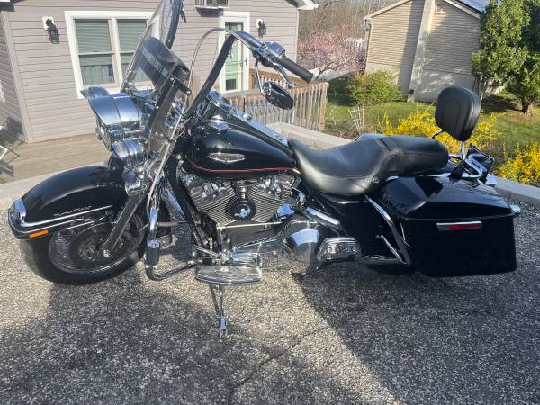 Harley Davidson Road King classic low mileage thunder, max fuel injection lots of chrome extras custom dual exhaust new tires, mid rise, handlebars, windshield LED lights beautiful condition runs...