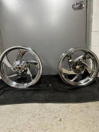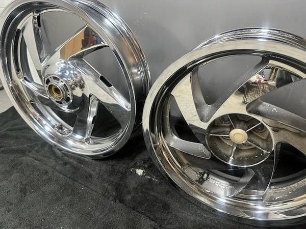 Selling a pair of chrome Honda Goldwing rims. Front is 18"x3.5 and the rear is 16"x5.5 in great shape,just a little pitting on 1 of the rims,see the picture. Fits years, 2001 through 2017. Asking...