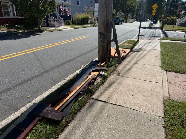 Hi! I have multiple pieces of wood, carbon steel piano strings with copper wire, and a cast iron plate from a recently disassembled upright console piano. Free to grab! These pieces are located at the corner of New Street and Spruce Street. Feel free to just grab from the sidewalk.