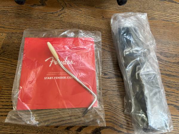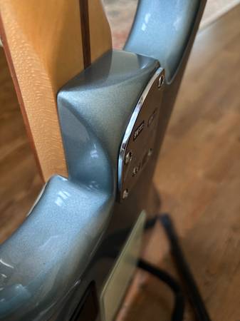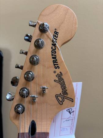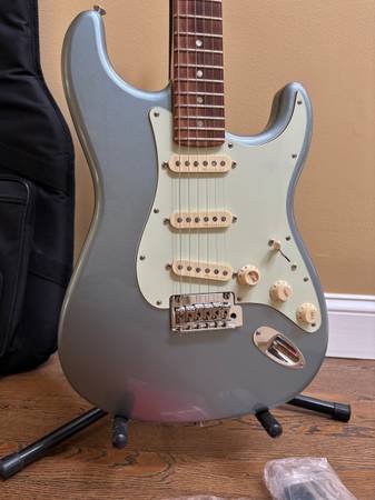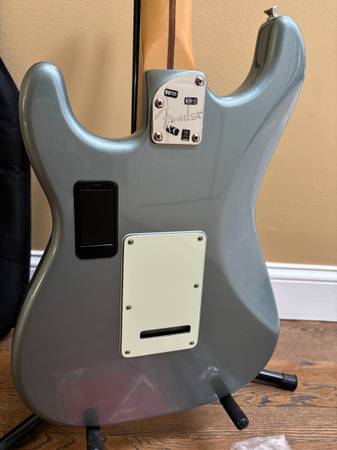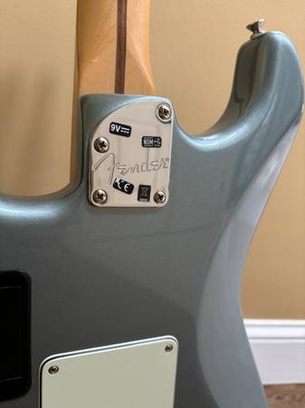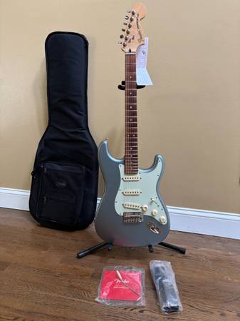 Fender Deluxe Roadhouse Stratocaster in Mystic Ice Blue with gig bag.
