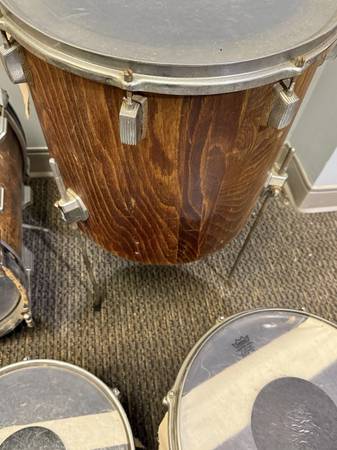 Vintage 6-piece 70s Rogers "Big R" Drums Butcher Block Finish. Condition is Used. Local pickup only.