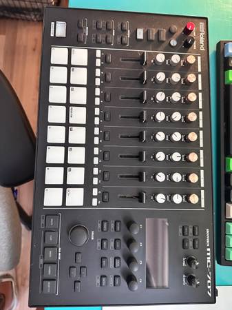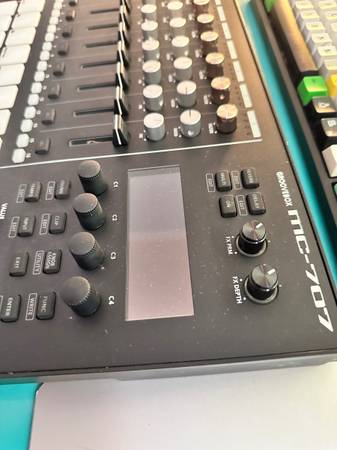 Roland MC-707 Groovebox , studio in one. It's a drum machine, it's a sampler, it's a sequencer, it's a DAW, and it's a synthesizer... all in one neat package. This thing is absolutely great and extremely fun to play and save your songs. It's one of roland's best digital boxes out there in my opinion. Comes with a felt-based dust cover, and custom knobs i've installed. All alloy/colored knobs. The 707 itself is in great condition and works perfect.