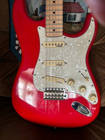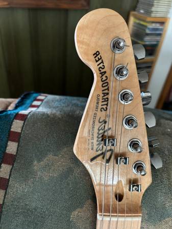 Stratocaster guitar that was built by someone, Has Wilkerson pickups which sound really nice, reverse headstock.