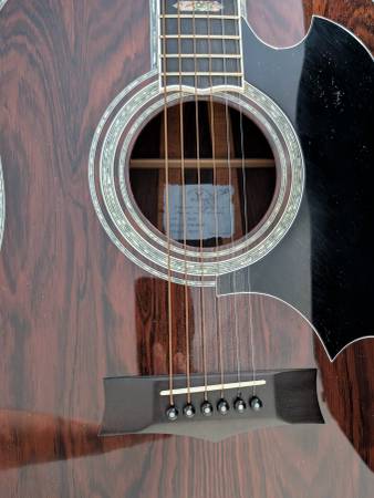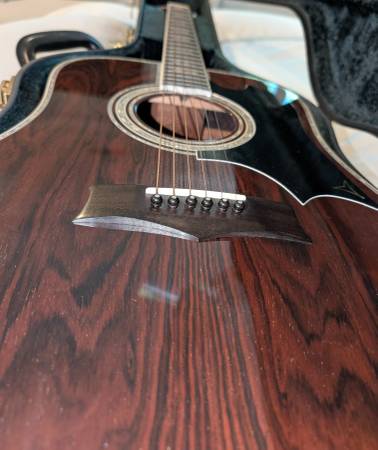 Heavily sought after stylish Yairi acoustic guitar. Barely used. TOP: Jacaranda BACK/SIDES: Jacaranda FINGERBOARD/BRIDGE: Ebony NECK: Mahogany NUT WIDTH: 42.0mm SCALE: 643mm CASE: Original Hardshell...