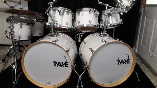 Brand new 9pc Taye Studio Birch kit.Ordered from factory,never played due to curcumstances.Absolutely stunning white sparkle galaxy ice lacquer finish,not a wrap finish.Sizes are as follows 22x18 bass drums.8-10-12-13-14-16 toms,14x6 snare.Asking $4,500 for the drums only.Brand new double braced hardware can be discussed at additional price.This kit is gorgeous.Come grab them.Will answer all questions.Thank you for looking.