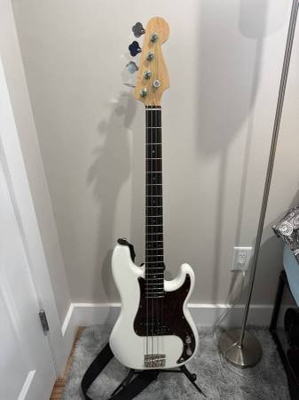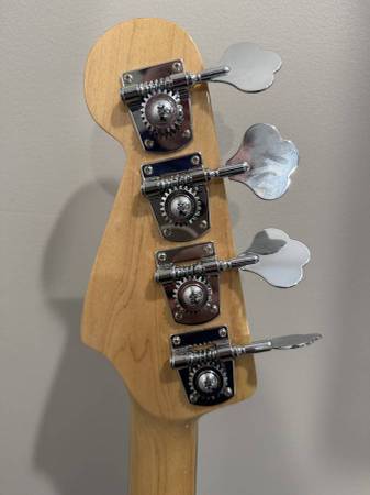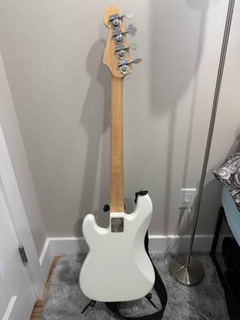 Squier Precision Bass, modded with Seymour Duncan pickups and an Allparts p-bass neck with abalone dot inlays and an extra fret. Would trade for a Squier Jazz Bass.