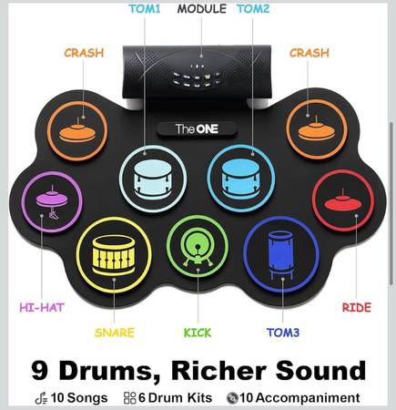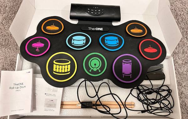 Looking for a versatile and portable drum set? Look no further than TheOne Roll Up Drum, brand new and still in its original box. This electronic drum set includes a pedal and is perfect for drummers on the go.