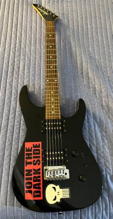 Jackson 6 string I purchased new in the early 00’s. Decals will come off with a little heat. There is a chip on the heasdstock, other than that no missing paint or scratches. Switch and pick ups work, knobs are nice and tight. Plays fine. Decent guitar. Has been in storage as I have others home I play and just need space.