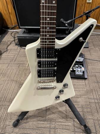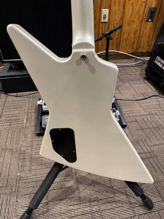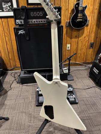 PRICED TO SELL…This is a custom guitar made for me by Marvin Guitars. It is hand made for me by one person. This was made to the specs I requested. All all Mahogony body, Rosewood Fret Board, the three pick ups are DiMarzio it has a Super Distortion in the bridge position, a104 in the neck position, and a super distortion P90 in the middle. There is a three way toggle switch that works just like a Gibson neck and bridge, with a master tone for all three pick ups, a master volume for the neck and bridge, and the middle P90 has its own volume so you can blend this however you like. You have complete control over the three pick ups, a rosewood fretboard, all Hip Shot hardware, white in color. Comes with a Gator Flight case. Seriously Only please.