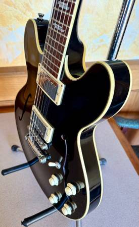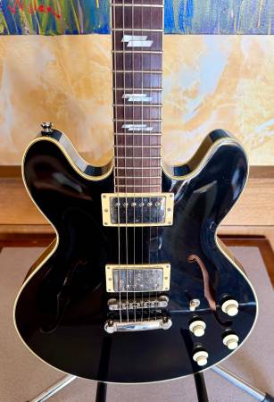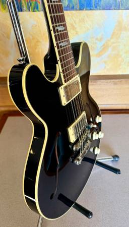 Body: Semi-hollow with a maple top and mahogany back and sides