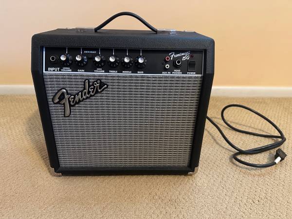 Fender Squier Strat Affinity Model with Frontman 15G amp and all necessary cables. Guitar and amp are both about 10 years old but only lightly used. Tested and working. Must come to me to pick up.