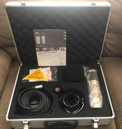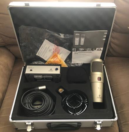 Open package new unused Behringer Studio Condenser Tube Microphone Model T-1 with carry case and all accessories. Kit includes: Tube Microphone Shock Mount Wind Screen Power Supply Long XLR Cord...