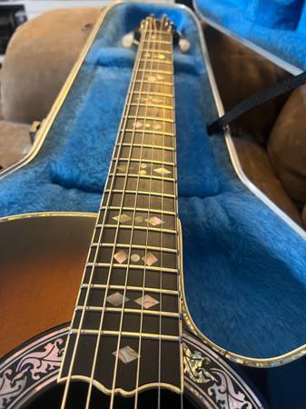 Don’t miss your chance to own this Vintage 1985/1986 Ovation 1869 Custom Legend, which is Ovation’s top of the line round hole guitar. Made in the USA. This high-end Ovation is known for its detailed appointments, deep projection, and superb playability. Its Sunburst finish is rich w/its pearloid top border & super clean. Beautifully ornate, with it’s gorgeous diamond inlays up & down the bound ebony fingerboard w/Ovations stunning carved bridge. Its OP-24 EQ still . Nice Gold Schaller tuners w/pearl buttons. Killer 40 year old in exceptionally clean shape & its comes in its original black hard case and original owner’s manual