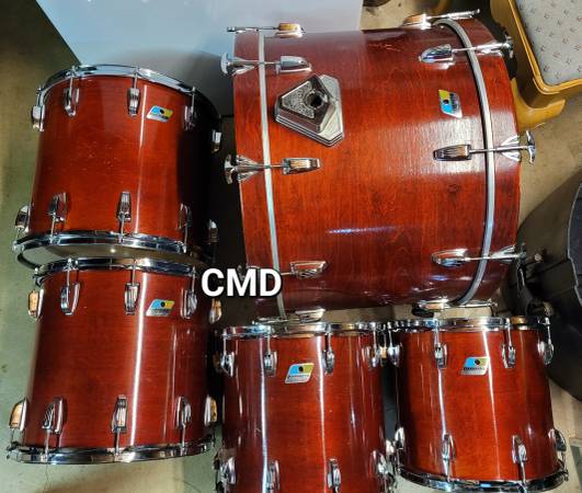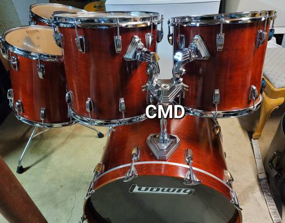 Vintage 1980/81 era Ludwig maple modular drumset in gorgeous red mahogany finish- big sizes 13x12 deep 14x13 15x14 16x15 modular mounted toms 24x16 bass drum w tom holder and stand for 15/16 - great vintage used condition overall w some expected 45 year old drumset wear - 6 ply maple shells includes hard cases some straps broken but usable - great price $1,100 cash venmo or ppl fnf firm message for North NJ driveway pick up today no holds no trades no shipping