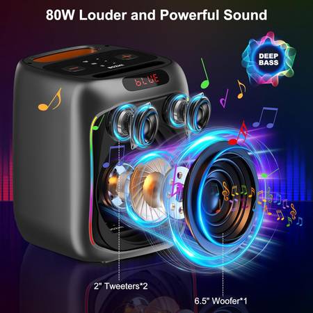 Unleash your inner superstar with this all-in-one karaoke machine! Whether you’re hosting a party, planning a family night, or just want to sing your heart out, this setup delivers crisp sound, vibrant lights, and total wireless freedom.