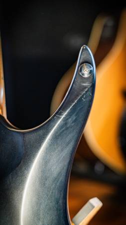 The matte finish on the front of the body has a polish spot near the pickup selector and the back has some small scratches from playing that do not affect the guitar's playability or sound.