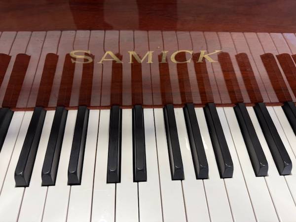Samick baby grand piano with player system. This is a gorgeous piano that has a player system which allows it to play itself! A wonderful feature!