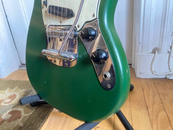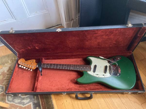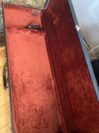 The case is also awesome, but not original. From the 70s, but has a beautiful burgundy inside. Great condition. Goes really well with the green guitar. Merry Christmas Colors!