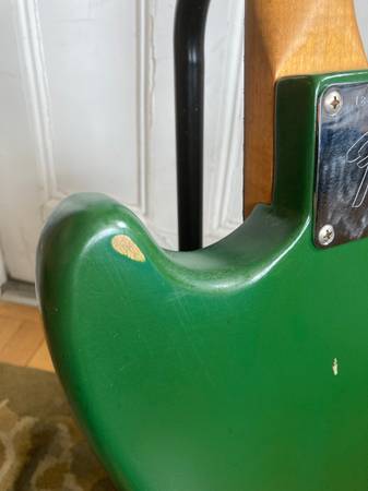 One of the most beautiful old refinishes you'll ever see. Forest/Hunter Green. Probably Nitro, but not 100% sure. Finish is so good it looks original, but is not. All parts are original except:
