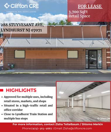 Ubícate en 288 Stuyvesant Ave, Lyndhurst, en el corazón de un corredor comercial y de oficinas muy transitado, ¡a pasos de la estación de tren de Lyndhurst!